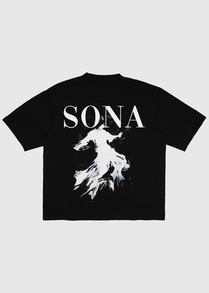 Black t-shirt with print on the chest with a round neck. Made from heavy, soft cotton with a classic fit. The t-shirt has a Casual look, the sizes correspond to regular standard measurements – if you normally wear size L, you should also choose L here.