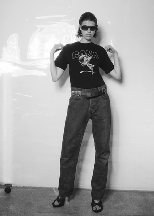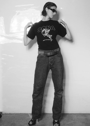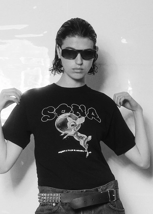 Black casual women t-shirt with print on the chest and round neck. Made from heavy, soft cotton with a classic fit. The sizes correspond to regular standard measurements – if you normally wear size L, you should also choose L here.